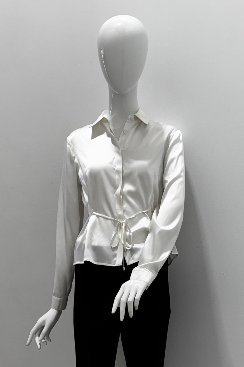 PUROTATTO Purotatto Tie Waist Hidden Buttons Silk Blouse