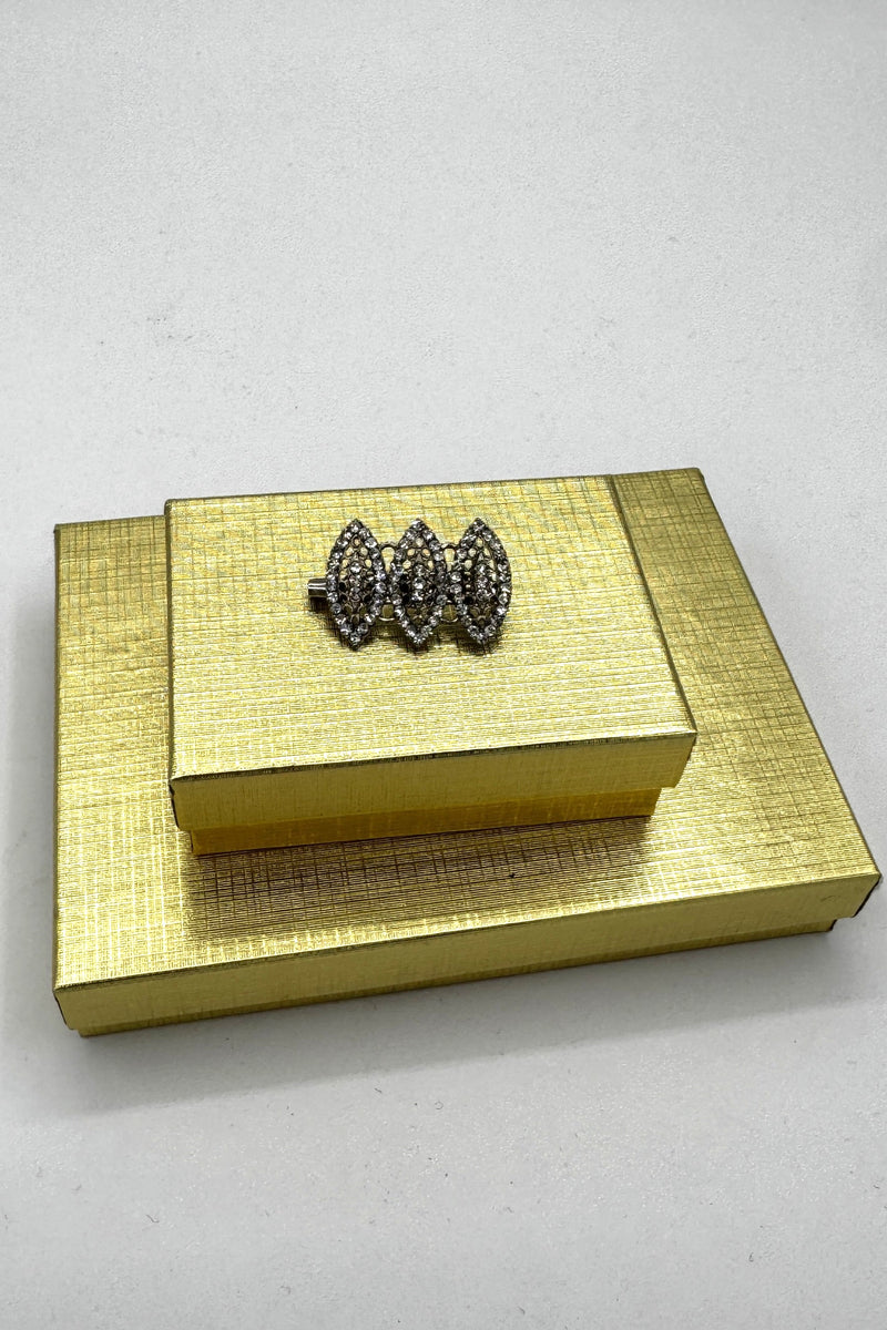 TRES CHIC Tres Chic Silver-Crystal Triple Leaf Brooch