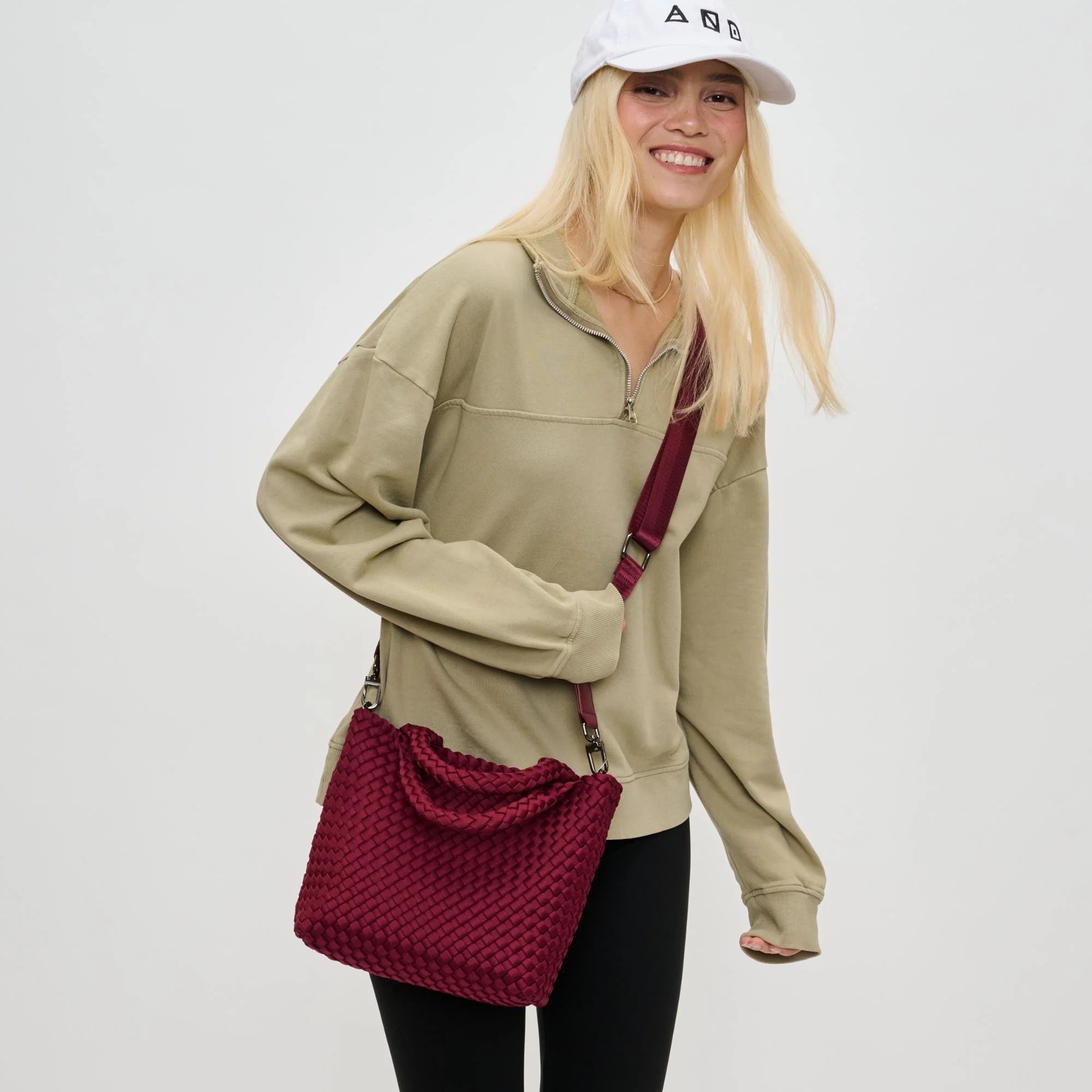 Elevate any look with the Sky's The Limit Small Tote from Sol and Selene. Crafted in durable woven Neoprene, this functional bag features a detachable crossbody strap, a removable zipper pouch, and a snap closure.