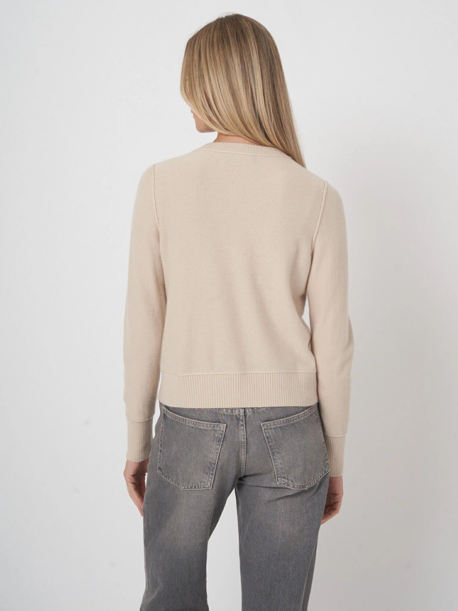 Repeat Cropped Organic Cashmere Cardigan With Pearl Buttons