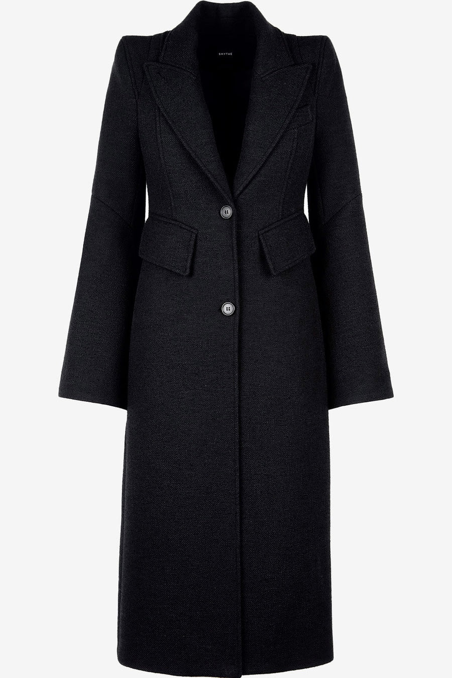 The Smythe Pagoda Brando Coat redefines tailored outerwear with a modern, architectural twist. Crafted from midweight stretch boucle, it offers structure and comfort in equal measure. The classic coat silhouette is enhanced with striking bell-shaped sleeves, adding a sculptural, contemporary edge to a timeless design. True to size, it pairs effortlessly with the Bootcut Pant in forest tapestry or other tailored pieces for a polished, cohesive look. Ideal for elevating both professional and weekend ensembles, the Pagoda Brando Coat blends sophisticated tailoring with inventive detail, making it a standout addition to any wardrobe.