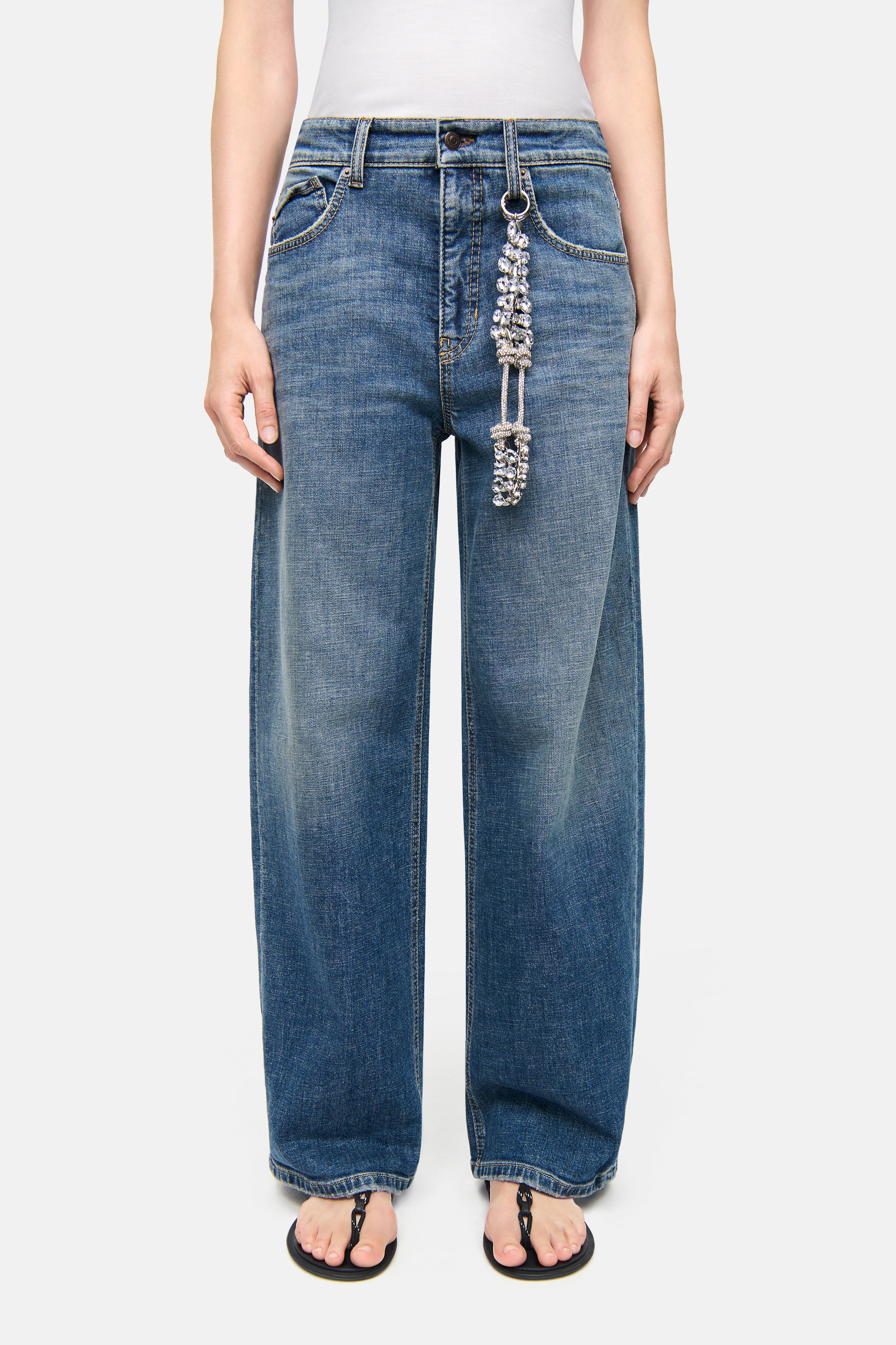 Modern five-pocket pockets complete the design in a functional and stylish way. As a special highlight of the current collection, the jeans add a sparkling accent with a striking rhinestone chain, lending any look a unique touch.