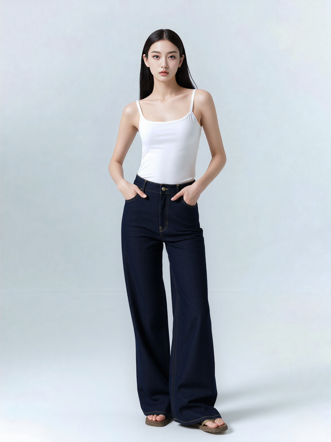 Our bestselling fit, now tall girl approved and in a dark blue wash. Le Slim Palazzo Long offers an extended 34" inseam, the same flattering high rise, fitted hip, and subtle wide-leg flare. Crafted from a sustainable, super-stretch cotton blend for soft and comfortable wear.