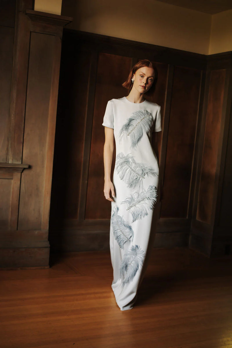 CATHERINE REGEHR Catherine Regehr Arak Dress with Falling Plume Detail