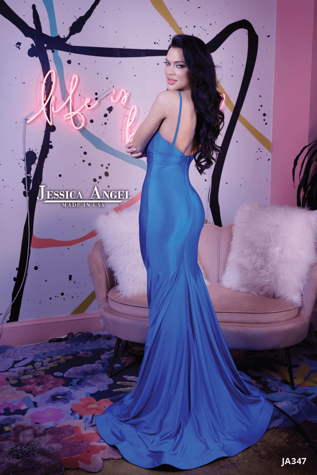 Simply elegant! Glamorous evening dress gown featuring a v-neck with spaghetti straps and floor sweeping hem and open back. The perfect dress for your evening event prom, bridesmaid, wedding party, graduation and special function.