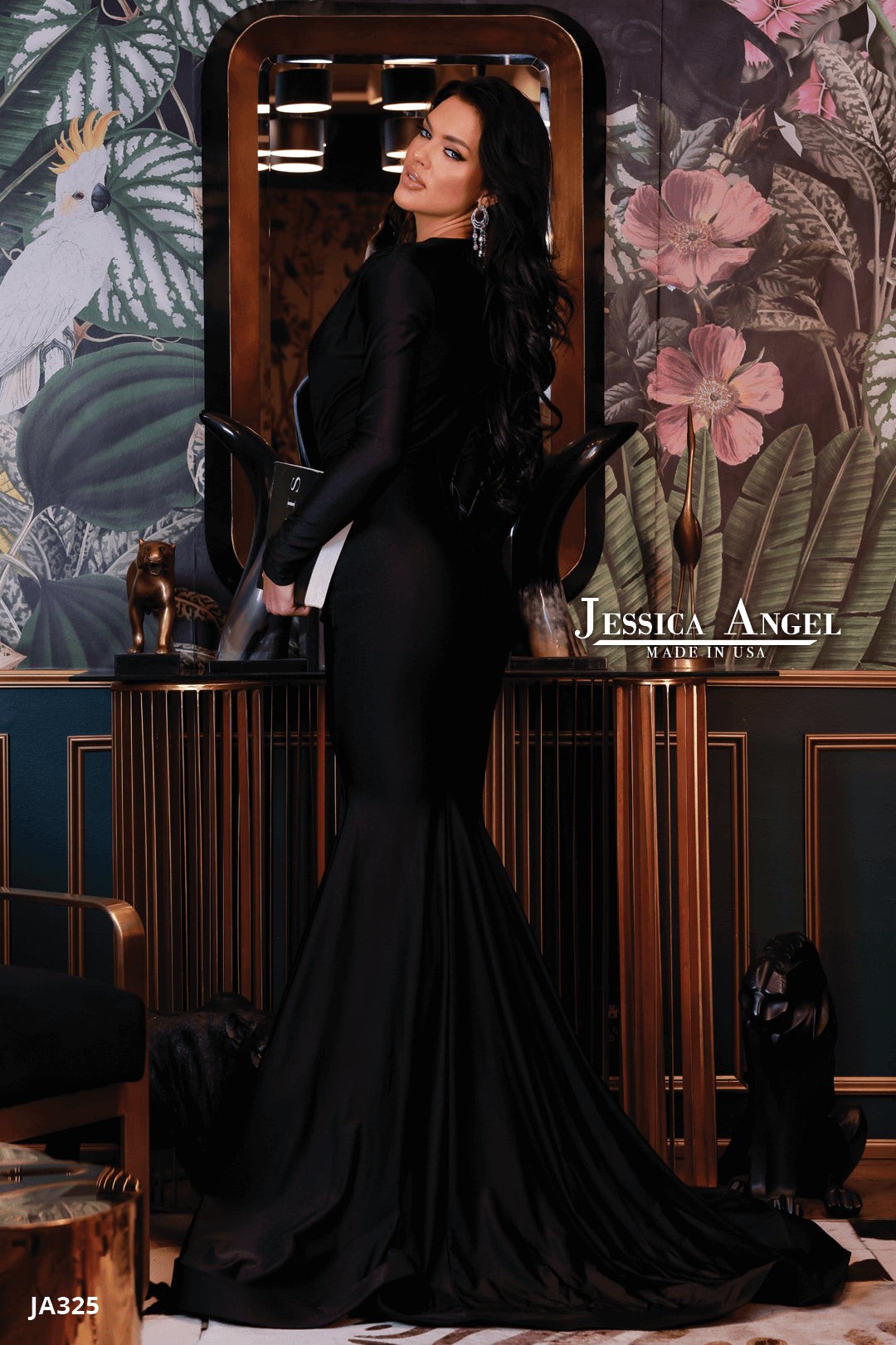JESSICA ANGEL Jessica Angel Long Sleeve Deep V Gown