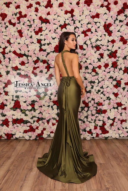 JESSICA ANGEL Jessica Angel Spaghetti Crossover Front Gown