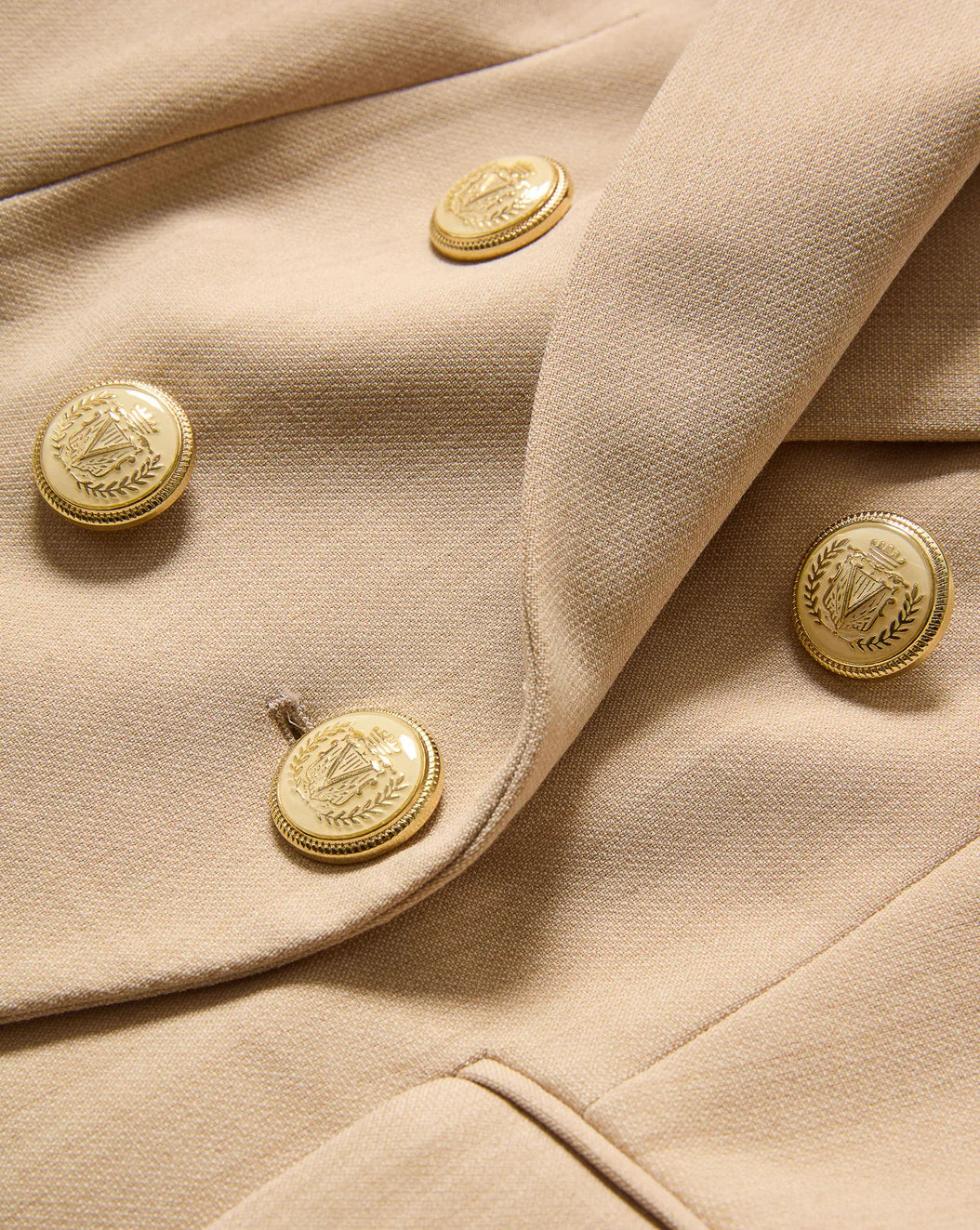 The best-selling Miller, now in chic heathered beige with our signature crest buttons. Everything else you love about the VB classic remains the same—precision tailoring, slight stretch, and slim, flattering fit. Wear this blazer with jeans and booties for an easy yet elevated everyday look. Switch it up with a dickey for even more options.