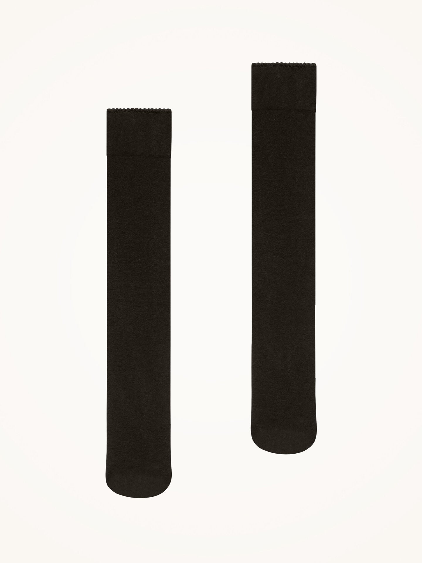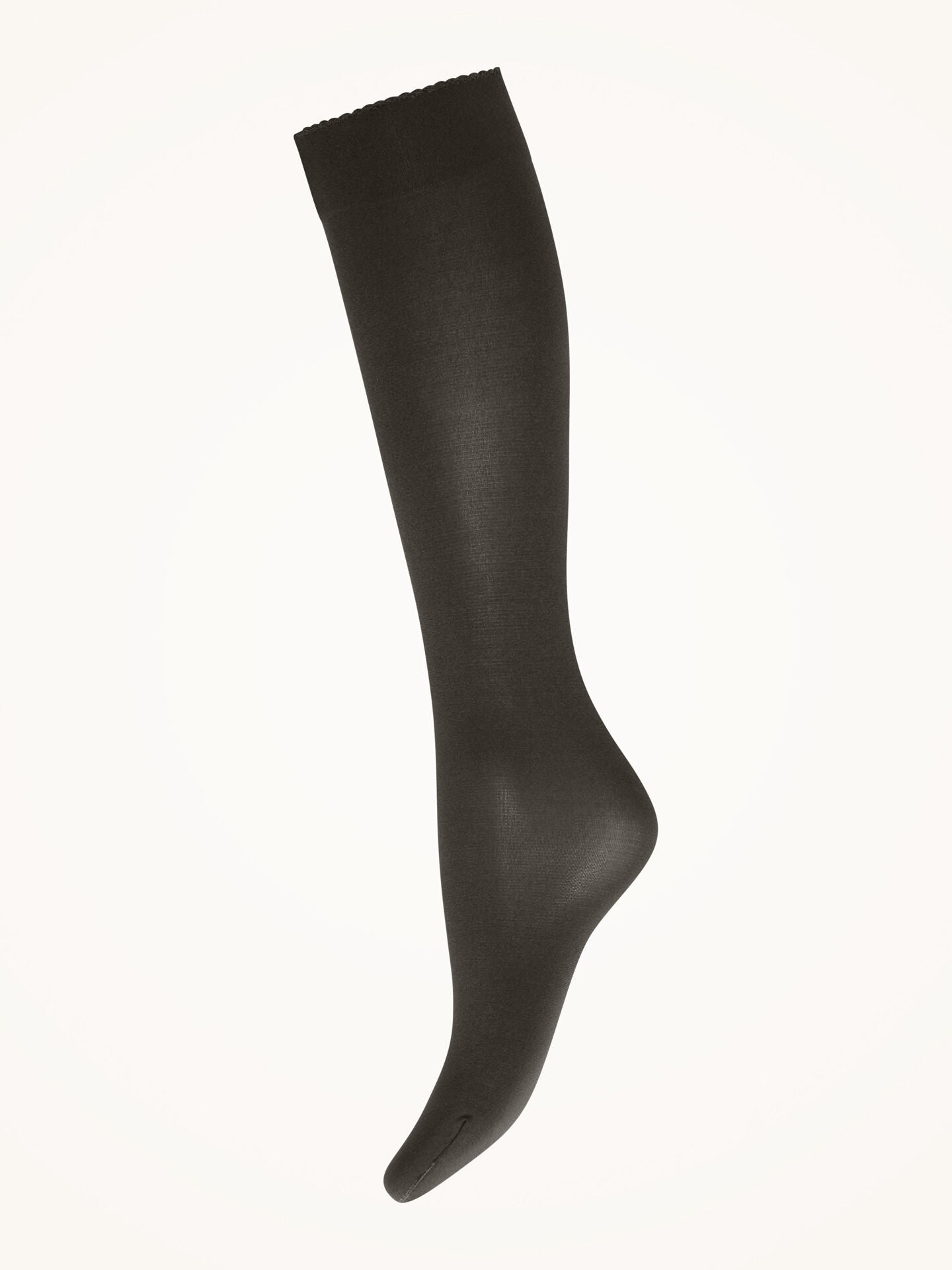 The accent for those cooler days: the mat, opaque knee-highs are made of exclusive and soft velvety material. Their optimum fit and spectacularly well-proportioned look make them stand out.
