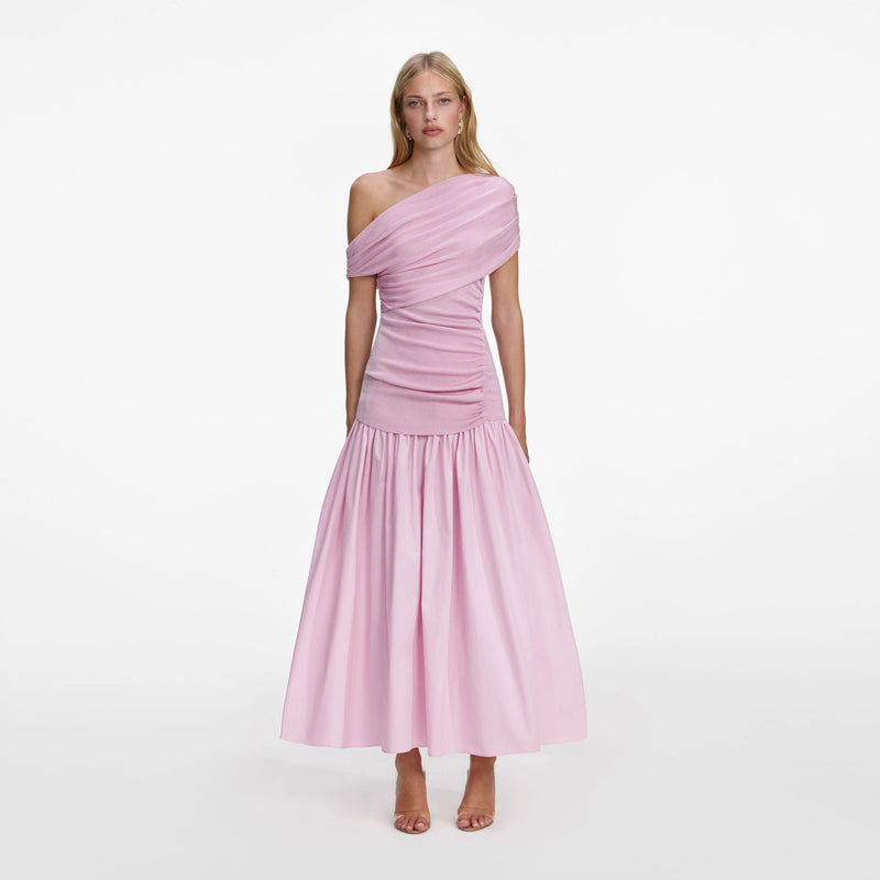Self-Portrait Self-Portrait Pink Cotton Draped Knit Midi Dress