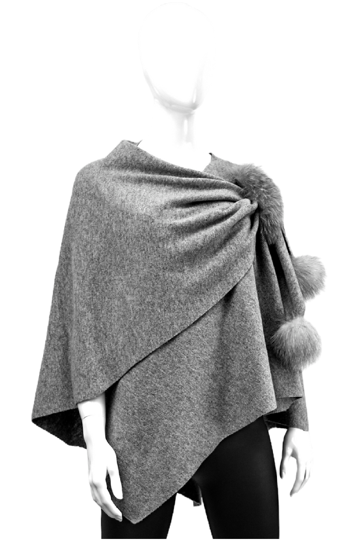 MITCHIE'S Mitchie's Cashmere Woven Wrap With Fox Trim