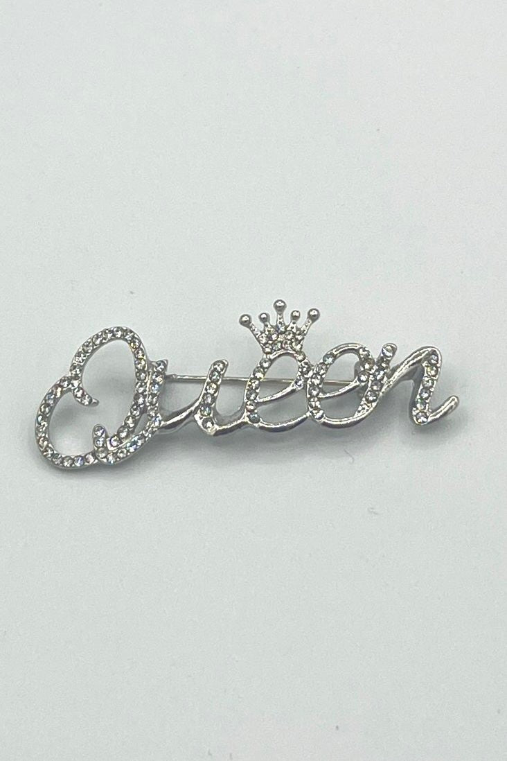 TRES CHIC Tres Chic Queen Writing Brooch with Rhinestones