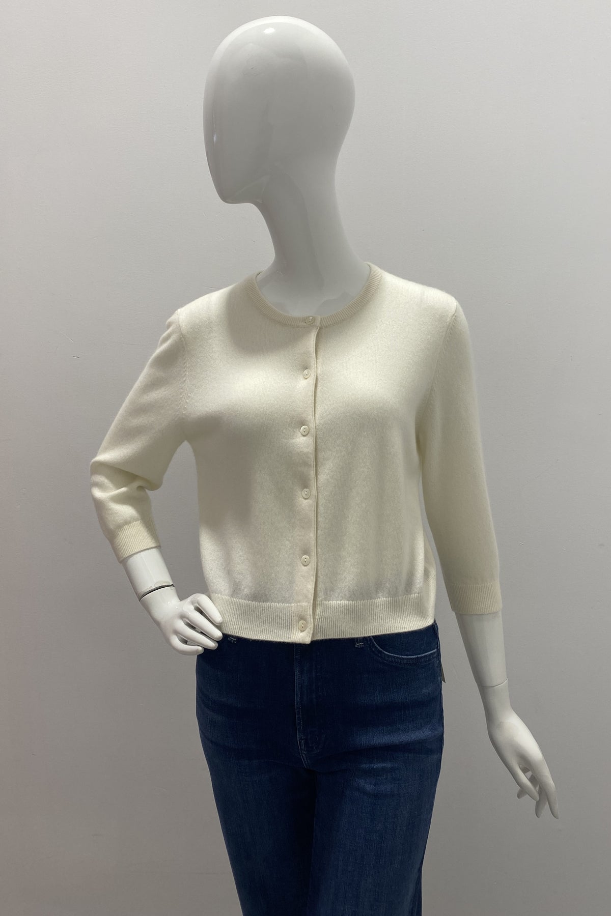 REPEAT Repeat Organic Cashmere Cropped Cardigan With Round Neck