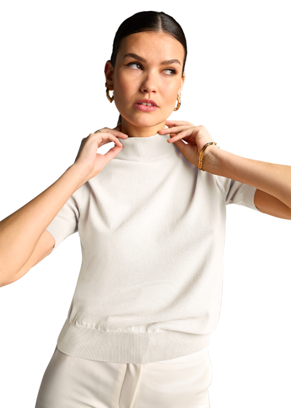 This RIANI jumper made from cool viscose yarn boasts short sleeves and an elegant turtleneck. It can be worn in a variety of ways - under a blazer, dress or on its own with trousers and a skirt. A casual alternative to a blouse and shirt for stylish everyday and business looks.