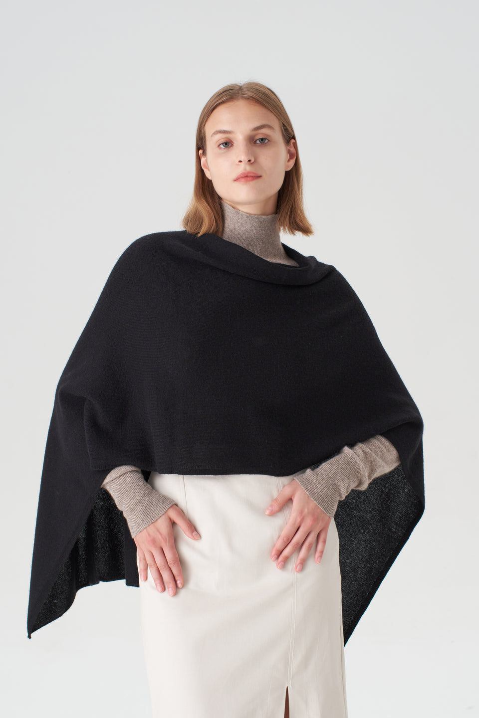 The Pissenlit Cashmere Topper is a luxurious wardrobe essential that combines versatility with timeless elegance. Expertly crafted from 100% grade A Mongolian cashmere, its sumptuously soft texture provides unmatched comfort while draping beautifully over the shoulders. Designed to be worn multiple ways, it effortlessly transforms from a chic poncho to a sophisticated scarf, making it perfect for layering over tailored outerwear or adding warmth and style to casual ensembles. Lightweight yet cozy, this topper elevates any outfit with understated refinement. A true investment piece, it embodies superior craftsmanship, versatility, and enduring luxury, offering both practicality and a touch of effortless glamour.