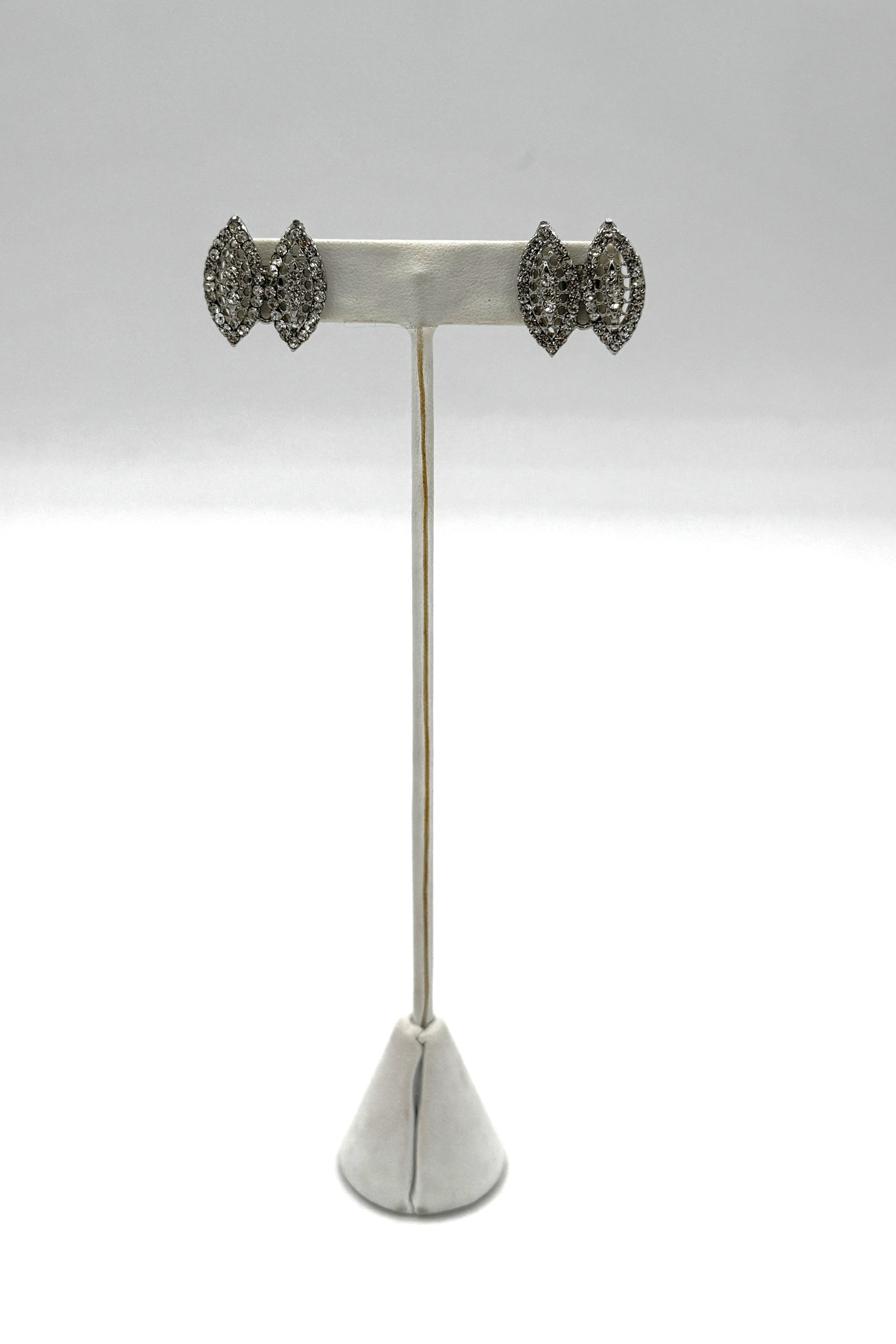 These elegant stud earrings feature two marquise-shaped leaves in a refined mirrored design, each pavé-set with shimmering clear crystals for luminous texture. Their compact, sculpted silhouette offers polished sparkle suitable for both everyday refinement and elevated evening looks, delivering a timeless, versatile accent.