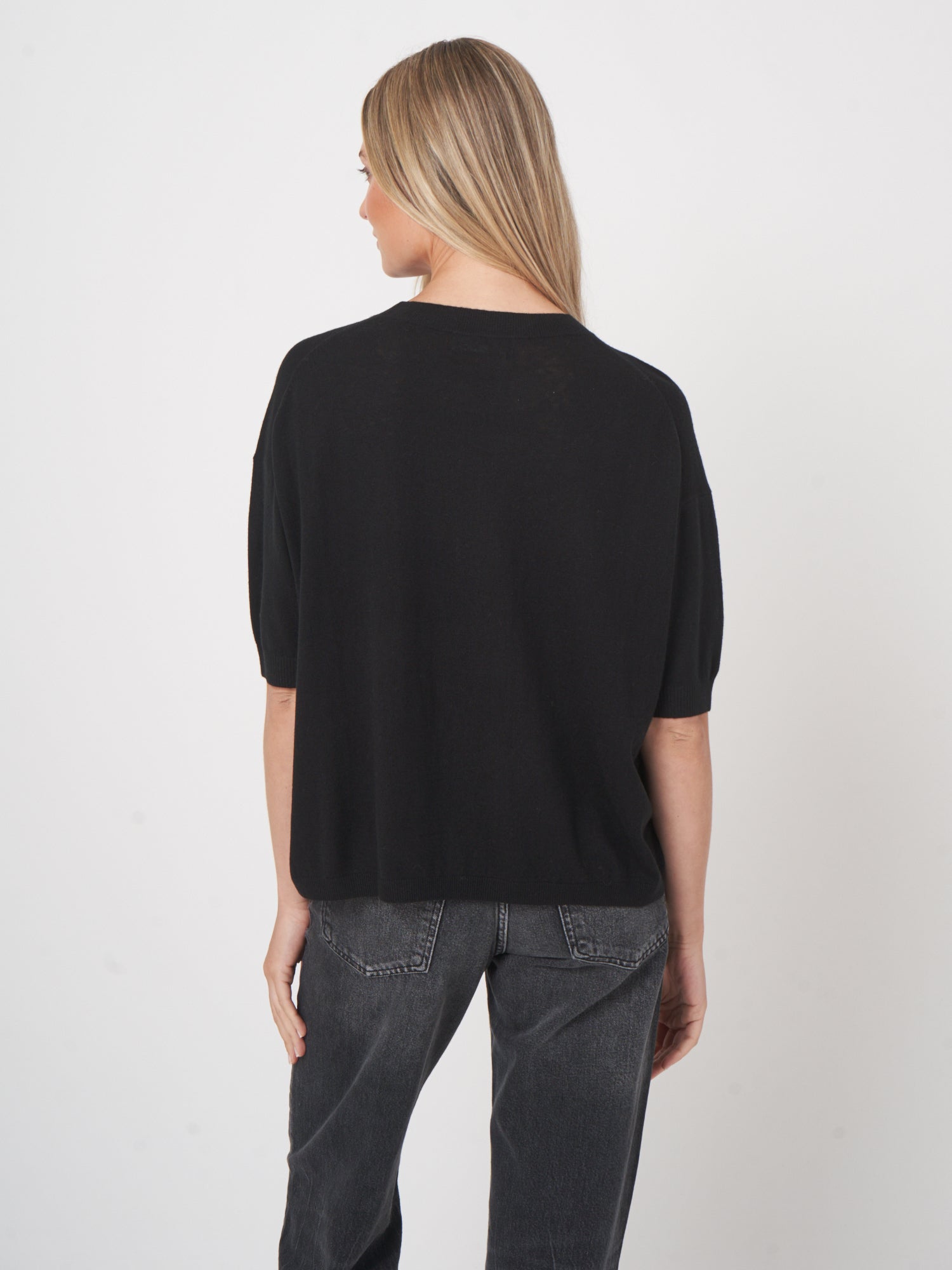This lightweight knit top offers a soft, breathable feel with an easy drape. Featuring a relaxed silhouette with dropped shoulders, short sleeves, and a classic crewneck, it delivers effortless comfort with elevated simplicity—perfect for transitional layering or standalone wear.