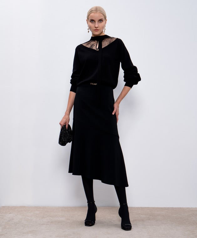 This Twinset midi skirt features a soft, flowing silhouette with an asymmetrical hemline for an effortlessly chic look. A mini gold chain detail at the waist adds a touch of luxury, while the subtle slit at the side enhances movement. Perfect for pairing with both casual and formal pieces, this versatile skirt offers elegance and comfort in equal measure.