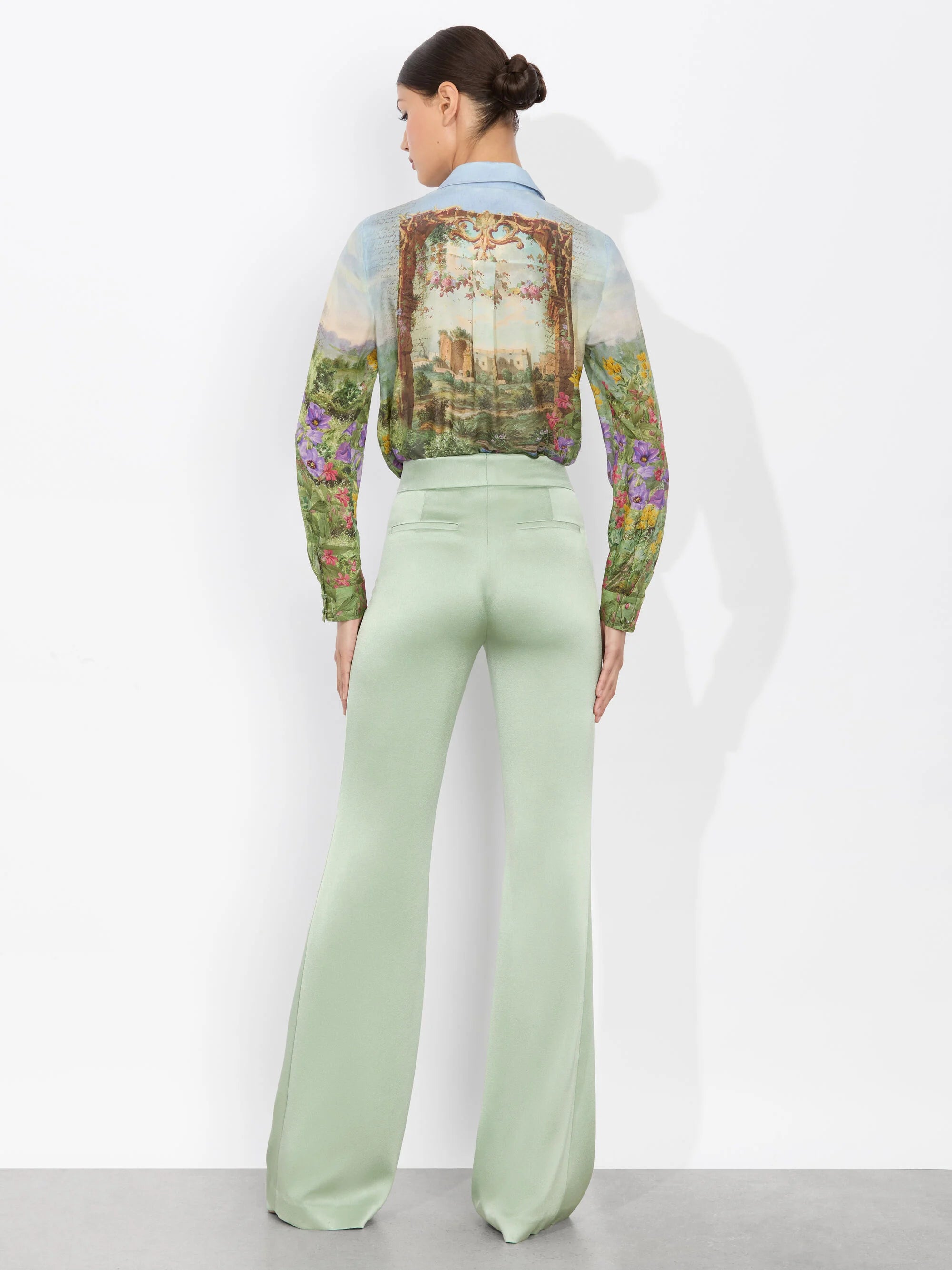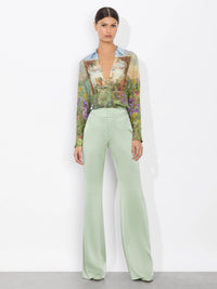 This stunning top is wearable art! Crafted in the novel Dusk to Dawn print, this pattern is our reinterpretation of Claude Monet's "Femmes au Jardin" oil painting. Handwritten love letters are layered over our own unique designs to bring the women in his garden to life. Made from a semi-sheer, silk crepe de chine, it has an airy body that’s the perfect weight for warm spring days. Perfect for making a statement, this blouse can be styled effortlessly with tailored trousers for work or with denim for weekend.